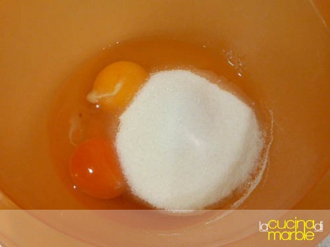 preparare la crema di ricotta unendo alle uova lo zucchero