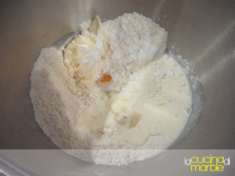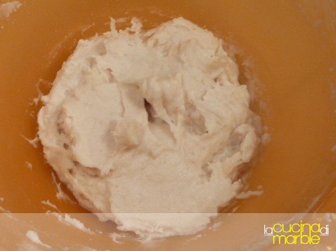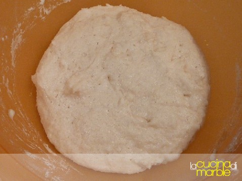 unire alla farina il lievito sciolto nell'acqua, si otterrà un composto appiccicosino e senza forma definita