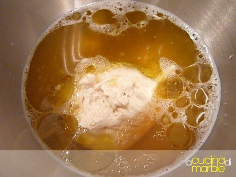 sciogliere nell'acqua 10 gr di lievito di birra
