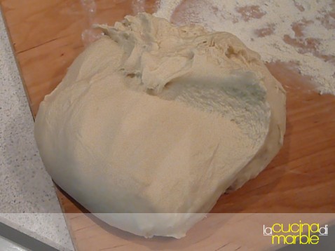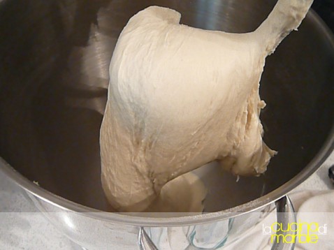 lavorare a lungo, con l'impastatore ci sono voluti quasi 20' a velocità 2 per ottenere un impasto omogeneo e ben incordato