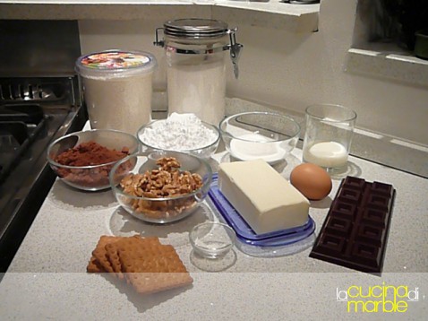 150 gr di biscotti tritati (io ho usato le classiche marie)