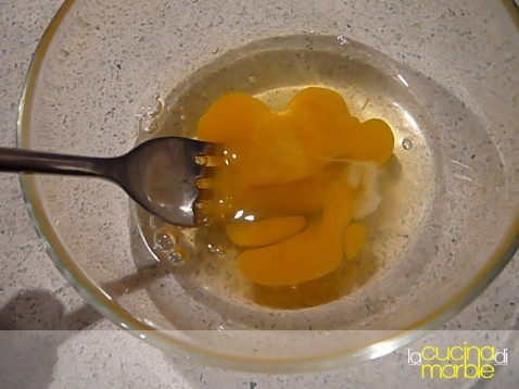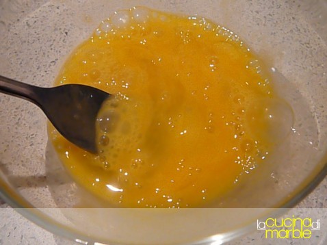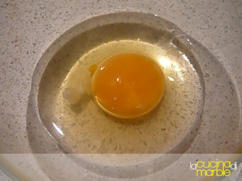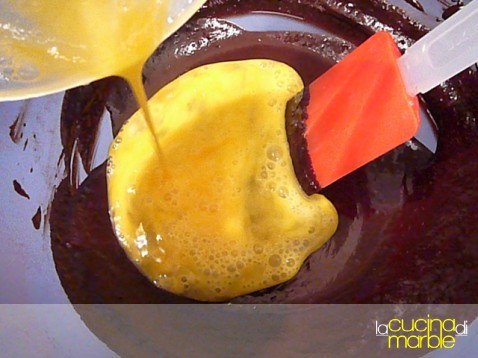 aggiungere l'uovo sbattuto all'impasto al cacao