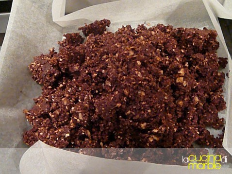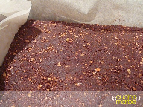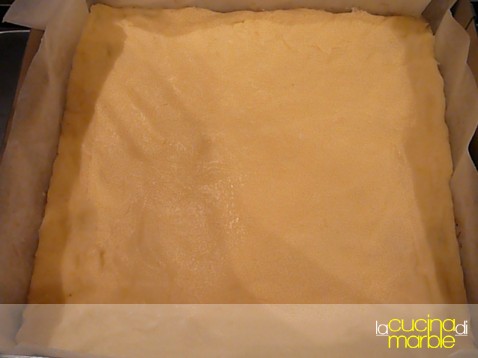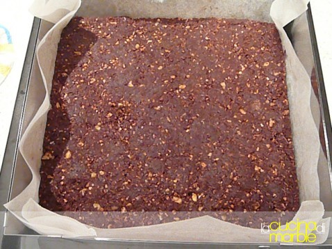 disporre il composto ottenuto in uno stampo quadrato misura di 20 cm x 20 cm rivestito di cartaforno