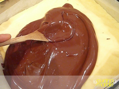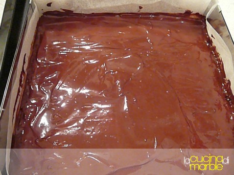 versare questo cioccolato di copertura sul "dolce" e riporre nuovamente in frigo fino a che non inizia ad indurirsi