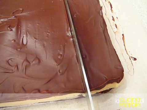 tagliare il dolce a barrette (ripulendo il coltello tra un taglio e l'altro in modo da non "sporcare" gli strati)