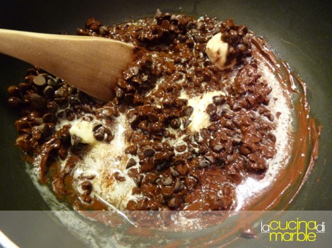fondere il burro insieme alle gocce di cioccolata