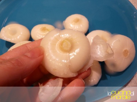 mondare, lavare ed asciugare le cipolline