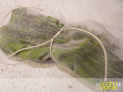 preparare il bouquet di erbe racchiudendole in una garza pulita