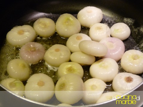 appena sarà ben caldo e inizierà a friggere aggiungere le cipolline in modo che siano tutte ben stese e non si sovrappongano
