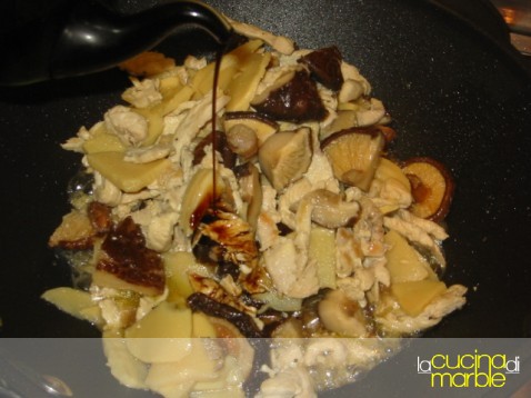 cuocere ancora pochi minuti e poi aggiungere fuori della salsa di soya, giusto il tempo di rigirare il tutto ed è pronto