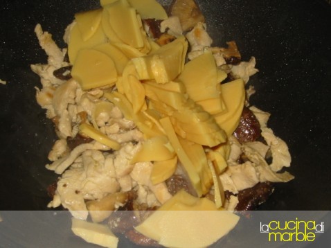 far cuocere 5' circa e poi aggiungere il bambù tagliato a fette sottili