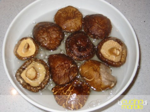 ammollare i funghi in acqua calda per una mezz'ora in modo da farli rinvenire