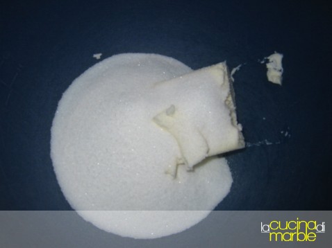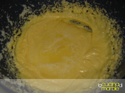 lavorare 300 gr di zucchero con il burro ammorbidito, aggiungere una ad una le uova continuando a montare
