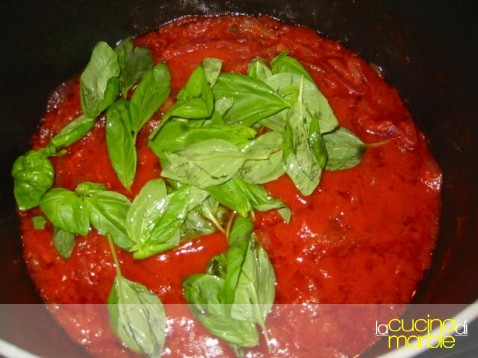 una volta cotto fuori dal fuoco aggiungere abbondanti foglie di basilico